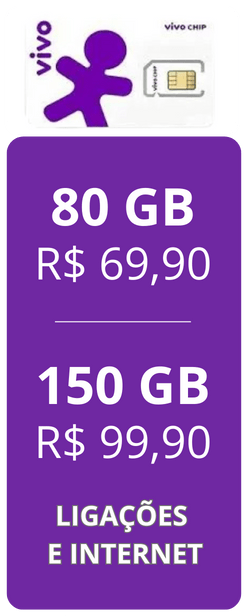 Caso você compre um chip avulso da Vivo, você pode pedir a ativação dele com um plano de 80 gigas ou superior.